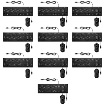 10 Pack- Staples TECH Keyboard and Ambidextrous Optical USB Mouse Combo, Black
