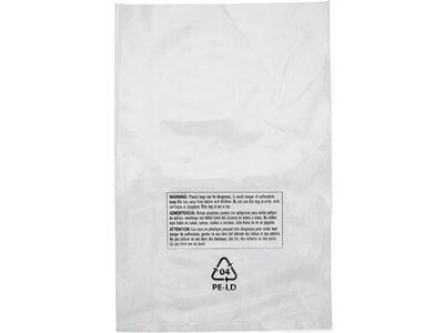 Perfect for retail and mail-order applications, this low-density polyethylene bags are preprinted with a standard three-language suffocation warning and recycle symbol to meet the standard shipping requirements of many online retailers.
