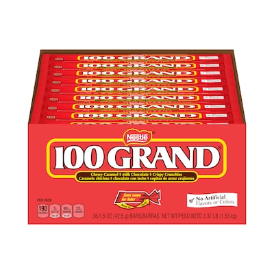 Stock up on classic candy with this 36-bar box of 100 Grand chocolate bars.