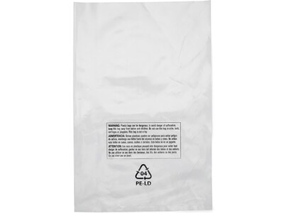 12" x 18" Suffocation Warning Layflat Poly Bags, 1 Mil, Clear, 1000/Carton (16055)