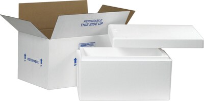 Ship items that need to be kept at a specific temperature with this Staples insulated shipper. Many mail trucks do not maintain a consistent temperature, but this insulated shipper has a tight fitting lid that allows the contents to keep at a constant temperature. The insulated foam also provides great protection to decrease the chances of something breaking.