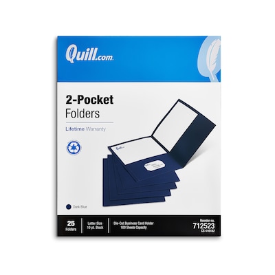 - Quill Brand® 2-pocket folders include a die-cut business card holder