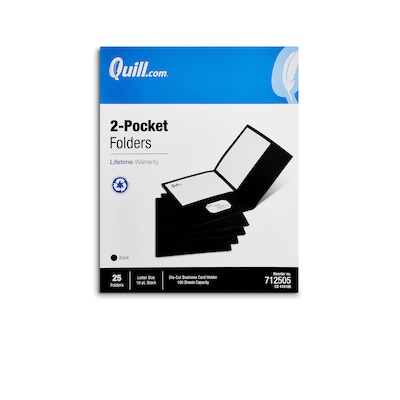 - Quill Brand® 2-pocket folders include a die-cut business card holder
