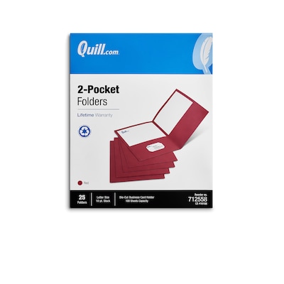 - Quill Brand® 2-pocket folders include a die-cut business card holder