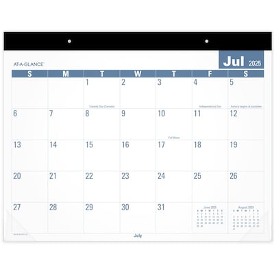 2025-2026 AT-A-GLANCE 21.75" x 17" Academic Monthly Desk Pad Calendar, White/Blue (SKLPAY-32-26)