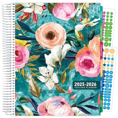 2025-2026 Global Printed Products Deluxe Teal Floral 8.5" x 11" Academic Weekly & Monthly Teacher Planner, Paperboard Cover