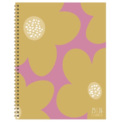 Live life in full bloom with our academic year planner featuring a vibrant floral cover design! Measuring 9" (w) x 11" (h), this all-encompassing large planner boasts 2-page spreads that include lined sections for notes, tasks, and goals and 2-page weekly spreads with lined daily sections to keep plans neat and organized, plus a dedicated weekly priorities section to help keep you focused. Inside pages are designed with bright and colorful accents with faux monthly tabs for easy access to weekly planning. Enhance your daily plans with 368 color coordinating stickers to highlight special occasions and personalize your planner. Bonus lined notes pages are in the back with yearly 2025 and 2026 views in the front. Featuring a durable cover and stylish gold wire-o binding designed to lay flat when open. Spanning the months of July 2025 - June 2026, this product has a plastic free cover and is fully recyclable!