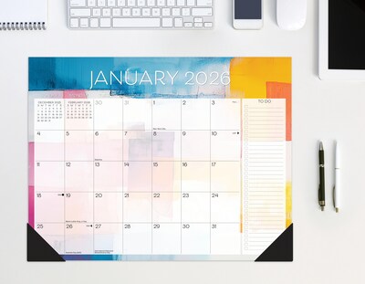 COLOR THERAPY – Bring bold, artistic energy to your workspace with the Abstract Art Academic Deskpad Calendar. Featuring 12 unique abstract designs—one for each month from July 2025 to June 2026—this 22" x 17" deskpad calendar combines vibrant colors and painterly textures with functional organization. Each month celebrates creative expression while helping you stay on schedule.