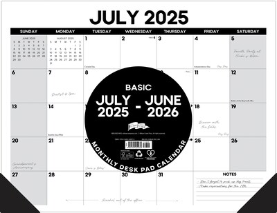 MODERN MINIMALISM, MAXIMUM STYLE - With its sleek, spacious layout, the Basic Academic 22" x 17" Deskpad Calendar is where form meets function. Designed for those who appreciate the beauty of clean lines and understated elegance, this calendar is a smart choice for the July 2025-June 2026 academic year.