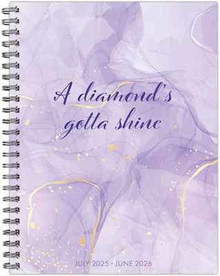 BEJEWELED – Add some spark to your sparkle with the A Diamond's Gotta Shine Academic Weekly Planner. Designed to help you organize your entire year in style, this 6.5" x 8.5" planner covers July 2025 to June 2026, making it perfect for students, teachers, and anyone with a busy academic schedule. The luxurious lavender marbled cover is accented with gold and bound with a lay-flat twin-wire binding.