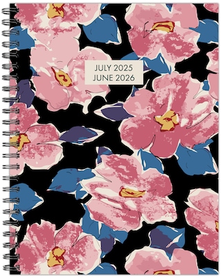 BOLD BLOOMS & BIG PLANS – Dynamic and modern, with a nod to vintage floral patterns, the Pink Florals 8.5" x 11" Academic Weekly Planner features a bold, vibrant floral design juxtaposed with bright pink flowers with a dark black background. The striking contrast gives this planner a dramatic yet elegant feel from July 2025 to June 2026.