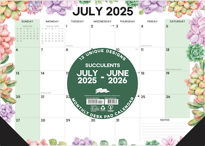 2025-2026 Willow Creek Succulents 17" x 12" Academic Monthly Desk Pad Calendar, Multicolor (56950)