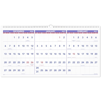 Great for use at the office or at home, this AT-A-GLANCE wall calendar helps you keep track of important events, three months at a time. Horizontal orientation shows past, current and future months, all on one page.