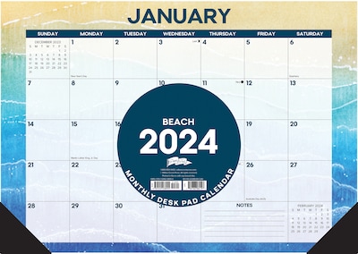 TROPICAL ESCAPE – Transport yourself to the shore with this beach-themed deskpad calendar, making your desk a tranquil escape as you plan your year.