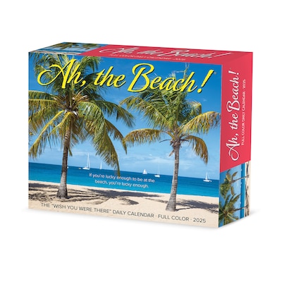 ESCAPE TO PARADISE – Experience endless beach bliss and tropical daydreams with our "Wish You Were There!" daily desk/box calendar whisking you away to sun-kissed beaches.