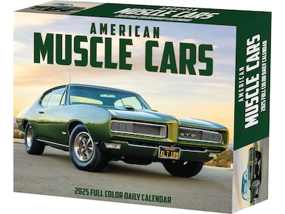Rev up your year with the raw power and timeless style of American muscle cars, captured in stunning photographs in this Willow Creek American Muscle Cars daily box calendar that pays homage to these legendary automotive icons.