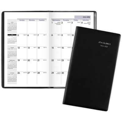 2026-2027 AT-A-GLANCE DayMinder 3.5" x 6" Academic Monthly Planner, Faux Leather Cover, Black (AY53-00-27)