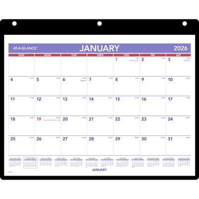 This AT-A-GLANCE monthly calendar allows you to keep track of important info and protect your calendar pages so you never have to miss a meeting because of a coffee stain again. The clear removable jacket cover can be used with a wet-erase marker (not included) to change plans on the fly.
