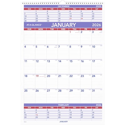 2026 AT-A-GLANCE 15.5" x 22.75" Three-Month Wall Calendar, White/Purple (PM6-28-26)