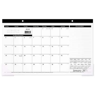 2026 AT-A-GLANCE 17.75" x 11" Monthly Desk Pad Calendar, White/Black (SK14-00-26)