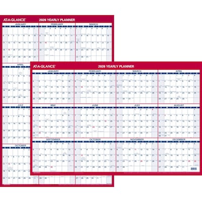2026 AT-A-GLANCE 36" x 24" Yearly Dry Erase Wall Calendar, Reversible, White/Red (PM26-28-26)