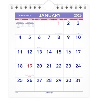 2026 AT-A-GLANCE 6.5" x 7.5" Monthly Wall Calendar, White/Purple (PM5-28-26)