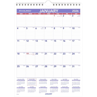 2026 AT-A-GLANCE 8" x 11" Monthly Wall Calendar, White/Purple (PM1-28-26)