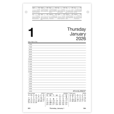 2026 AT-A-GLANCE 8" x 5" Daily Desk Pad Calendar Refill Pages, White/Black (E458-50-26)