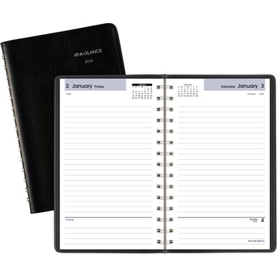2026 AT-A-GLANCE DayMinder 5" x 8" Daily Planner, Faux Leather Cover, Black (SK46-00-26)