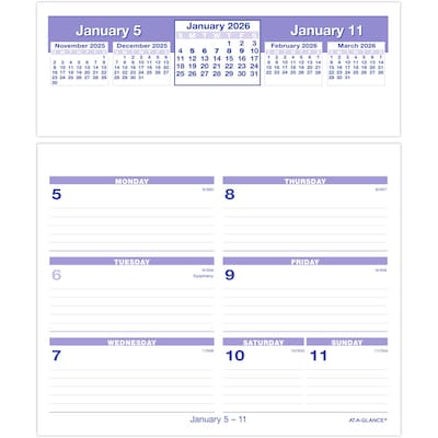 2026 AT-A-GLANCE Flip-A-Week 7" x 5.5" Weekly Desk Calendar Refill Pages, White/Blue (SW705X-50-26)