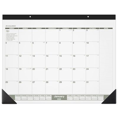 2026 AT-A-GLANCE Recycled 21.75" x 17" Monthly Desk Calendar, Green/Black (SK32G-00-26)
