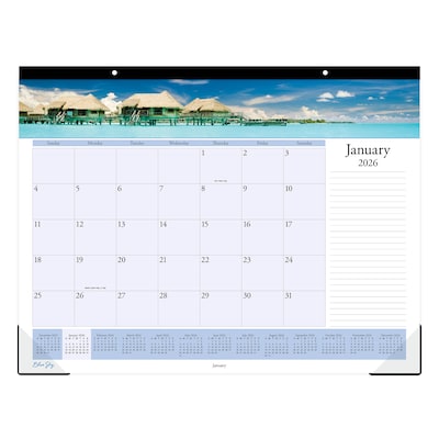 - 12-month desk pad: January–December 2026 with serene island-inspired art