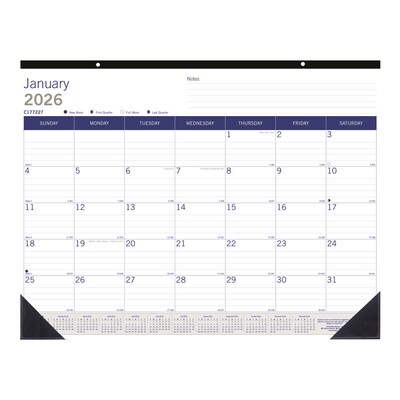 2026 Blueline DuraGlobe Bamboo Fiber 22" x 17" Monthly Desk Pad Calendar, Blue/White (C177227)