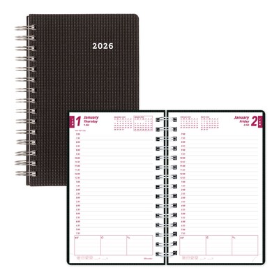 2026 Brownline DuraFlex 5" x 8" Daily & Monthly Appointment Book, Plastic Cover, Black (CB634V.BLK)
