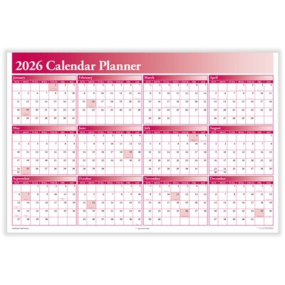 2026 ComplyRight Full Calendar Planner 36" x 24" Yearly Dry Erase Wall Calendar, Burgundy (J0056BU)