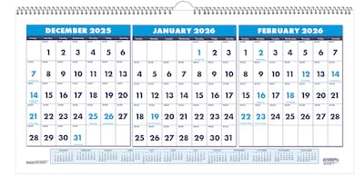 2026 House of Doolittle 17" x 8" Three-Month Desk Calendar, Blue (3647-26)