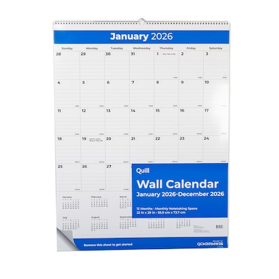 2026 Quill Brand® 30" x 20" Vertical Wall Calendar, Blue (63007-26-QCC)