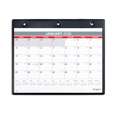 2026 Staples 11" x 8" Monthly Wall Calendar, White/Red/Gray (ST12949-26)