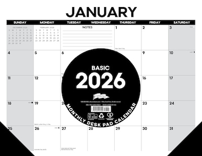 2026 Willow Creek Basic 22" x 17" Monthly Desk Pad Calendar, Black/White (57209)