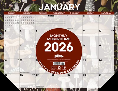 2026 Willow Creek Monthly Mushrooms 22" x 17" Monthly Desk Pad Calendar (57247)