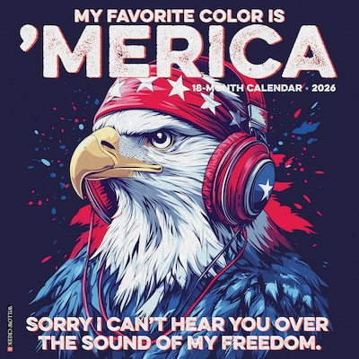 STARS, STRIPES & SASS – The My Favorite Color is ’Merica 2026 calendar serves up bold patriotism with a heavy dose of humor, pairing vintage-style artwork with hilarious slogans that celebrate American pride. Perfect for fans of freedom, fireworks, and funny one-liners all year long.