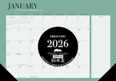 2026 Willow Creek Urban Chic 17" x 12" Monthly Desk Pad Calendar, Green (57179)