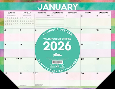 2026 Willow Creek Watercolor Stripes 22" x 17" Monthly Desk Pad Calendar (57292)