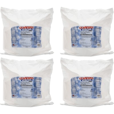 2XL Antibacterial Gym Wipes Refill, 1-Ply, 6 x 8, Unscented, White, 700 Wipes/Pack, 4 Packs/Carton