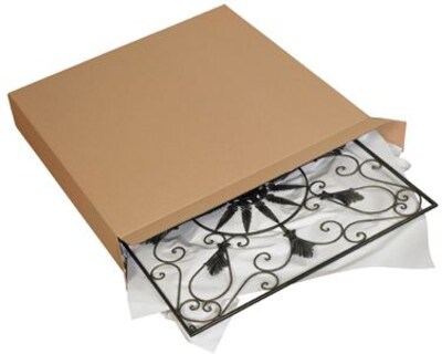 Side Loading Corrugated Shipping Box opens along the ends for easy insertion of frames, mirrors and other flat products.