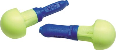 3M Uncorded Ear Push-In Earplugs, 100 Pairs are made of ultra-soft polyurethane for precise noise reduction. They feature a no-roll design and blue stem for easy insertion and removal.