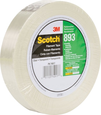 Scotch® General performance filament tape measures 1" x 60 yds and has high tensile strength. Tape features polypropylene backing with a synthetic rubber resin adhesive provides superior performance, sold as 6 rolls per pack.