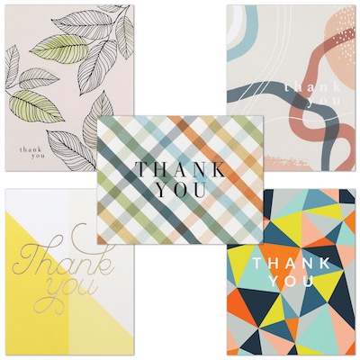 - The assortment pack includes 2 each of 5 thank you card designs for a total of 10 cards