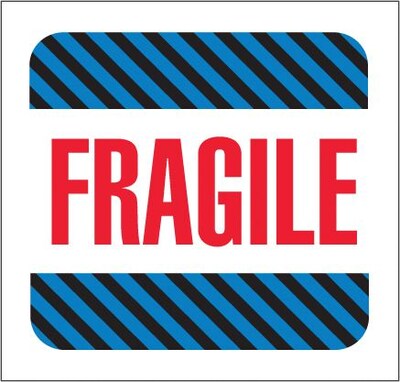 4 x 4" Fragile (Black/Blue Stripes) Label