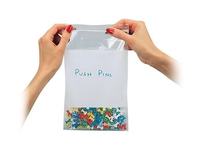 Keep office supplies or small parts neatly organized with these C-Line clear white-block 4 x 6-inch reclosable poly bags.